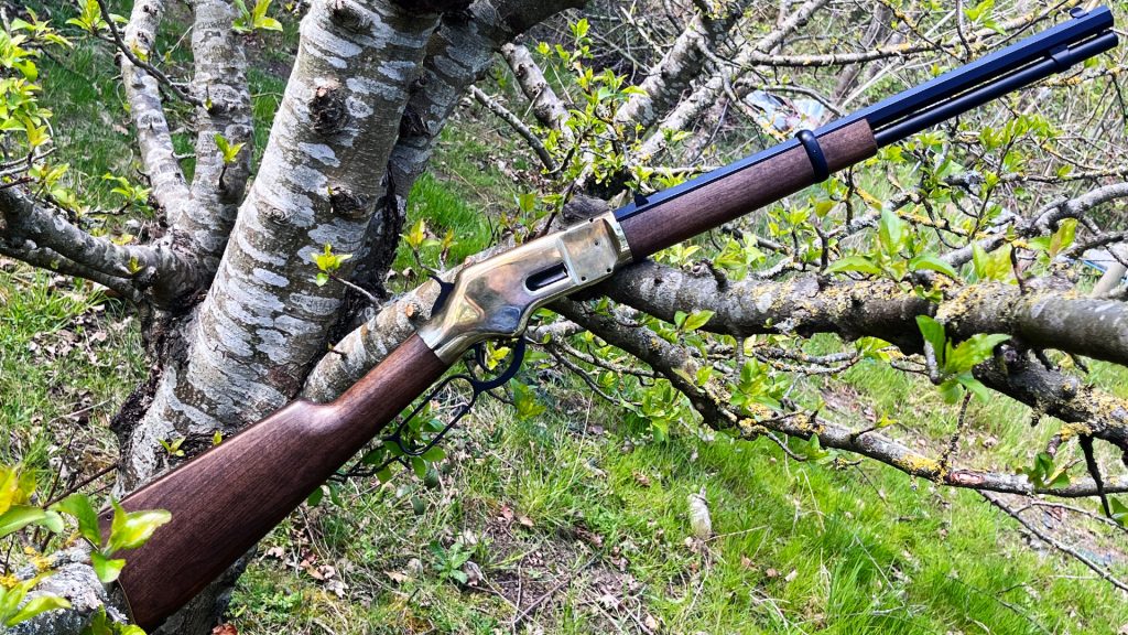 The design is a tribute to the Winchester underlever rifle produced in 1866 which originally was a black powder cartridge rifle with a brass frame which gave it the nickname “The Yellow Boy”. This replica has a beautiful octagonal barrel which is a little closer to the later 1873 model but let’s not let that get in the way! The rest of the rifle is quite accurate to the original.